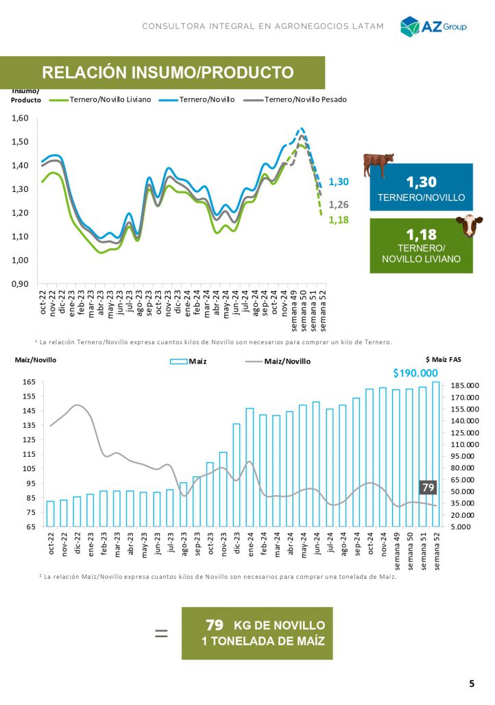 El maíz tocó los $/ton 190.000 pero la suba del precio del novillo mantiene la relación alrededor de los 80 kg de novillo por tonelada de maíz.