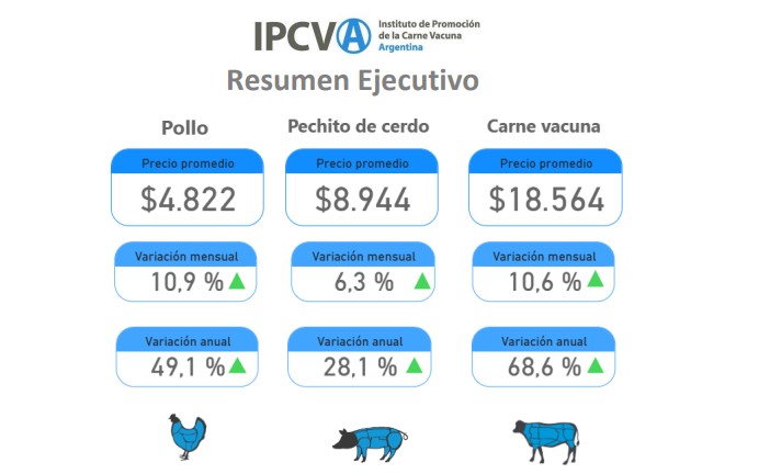 En el caso de la carne porcina, los precios el mes pasado subieron 6%. Esto repercutió en el valor del capón de forma positiva y también en los márgenes de la actividad. En el año la carne de cerdo subió sólo 28%, y es la única que atrasa respecto de la inflación.