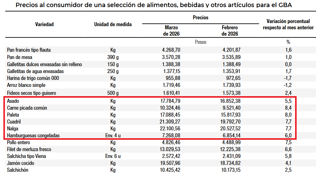 Es decir: el crecimiento del precio de los alimentos en general y de la carne vacuna en particular terminó neutralizando los intentos de forzar una baja de la inflación testimonial por medio del uso de una ponderación anticuada.