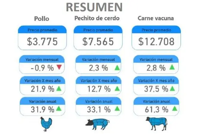 El precio del pollo fresco mostró una variación del -0,9 por ciento en el mes de octubre 2025 con respecto a septiembre. Durante los primeros diez meses del año fue del 21,9 por ciento. Y comparando con los últimos doce meses, el incremento fue del 31,9 por ciento. Por su parte, el precio del pechito de cerdo tuvo una variación del 2,3 por ciento con relación al mes anterior. En los primeros diez meses del año fue del 12.7 por ciento. Y 33,1 por ciento vs octubre 2024.